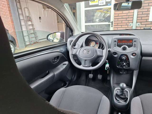 Waarom deze Toyota Aygo zo populair is? Dat is echt niet zo moeilijk. Want hij heeft heel wat fijne extra's verstopt in z'n handige formaat. En heerlijk laag in verbruik, wegenbelasting en verzekering. Zijn pittige prestaties dankt deze auto aan zijn compacte en zuinige motor. Tot de uitrusting van deze Toyota behoren ook LED-dagrijverlichting, getint glas, neerklapbare achterbank en LED-achterlichten.De sensoren van de achteropkomend verkeer waarschuwing houden zicht op de dode hoeken achter u. Te weinig afstand tot de achterligger? Het systeem geeft direct een signaal. Natuurlijk is er in deze auto airconditioning aanwezig. Deze auto is voorzien van centrale deurvergrendeling met afstandsbediening en verstelbaar stuur.