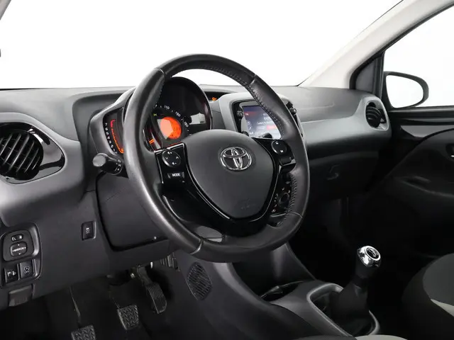 De achteruitrijcamera maakt inparkeren gemakkelijker dan ooit. De radio harder of zachter zetten of iemand uit uw contactenlijst bellen. Dankzij de spraakbediening doet u dit allemaal met uw stem. Met het navigatiesysteem kiest u de snelste route naar uw eindbestemming. Ook over uw schouder ziet u onderweg niet alles wat er aan de achterzijde gebeurt. Daarom heeft deze Toyota Aygo een achteropkomend verkeer waarschuwing. Het hele jaar door zorgt airconditioning voor een prettige temperatuur. De Toyota is standaard voorzien van: lederen stuur en versnellingspook en centrale deurvergrendeling met afstandsbediening.