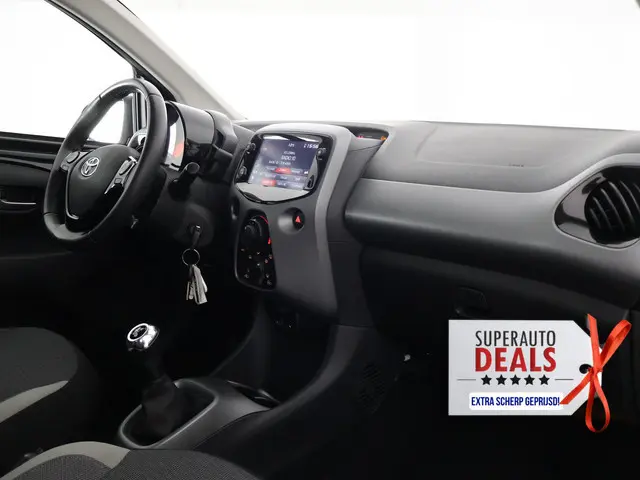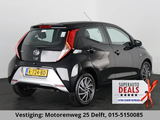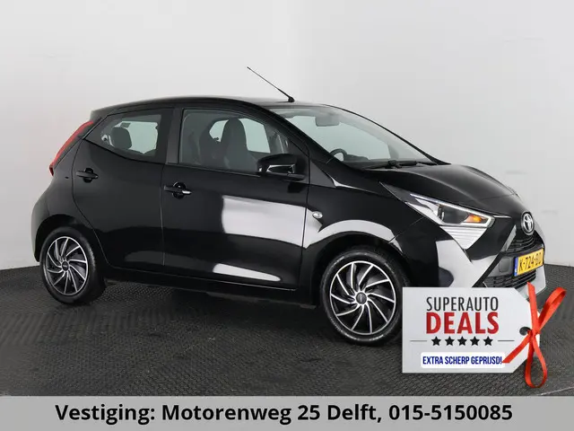 *SUPERDEAL !! NU EXTRA KORTING , KIJK EN VERGELIJK !!**Deze auto staat op de Locatie: Motorenweg 25 te Delft 015-5150085** Volledig Onderhouden Aygo in de XPlay uitvoering. Volledig onderhouden, super sportief in het zwart, apple carplay en Android auto voor uw navigatie en telefoon integratie,speed limiter , airco, 5 portieren etc etc. Beurten bij 12.000 km / 29.000 km / 44.000 km / 56.000 km / 70.00 km 75.000 km en 89.000 km.Een geweldige onderhoudshistorie. Met Toyota garantie tot bijna 2031 ! Uniek toch ?Rijden als nieuw? Dan is deze Toyota Aygo een fantastische buitenkans. Prille cijfers op de teller, piepjong ogend, verbluffend actueel in extra's en opties... Deze Toyota Aygo heeft het allemaal! Met de pittige benzinemotor en de handgeschakelde vijfversnellingsbak manoeuvreert u moeiteloos door het verkeer. Bij de uitrusting van deze auto horen onder meer LED-dagrijverlichting, in delen neerklapbare achterbank en LED-achterlichten.