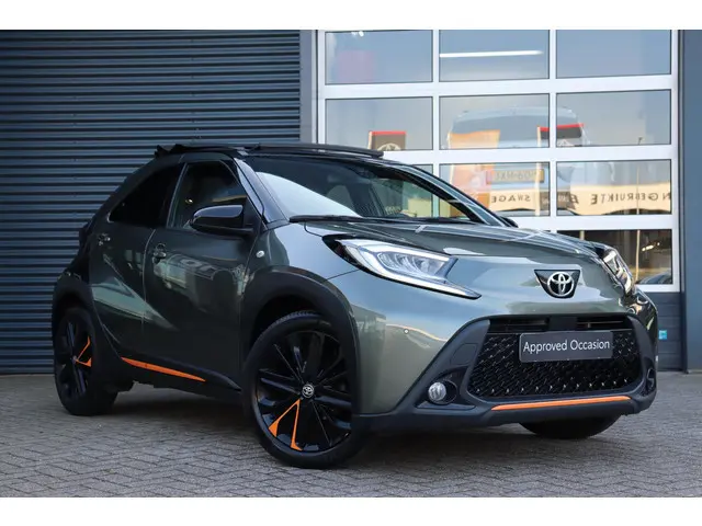 ..Geweldige Aygo-X! Deze Aygo Limited CVT automaat in de kleur Cardamon Green met cabriodak is klaar voor de zomer! Rijk uitgerust met o.a: oranje accenten, parkeersensoren voor en achter, half lederen bekleding, stoelverwarming, parkeercamera, navigatie, prachtige lichtmetalen velgen en meer! U bent welkom voor een proefrit.Geniet nu, betaal zoals jij wilt met Toyota Betaalplan.