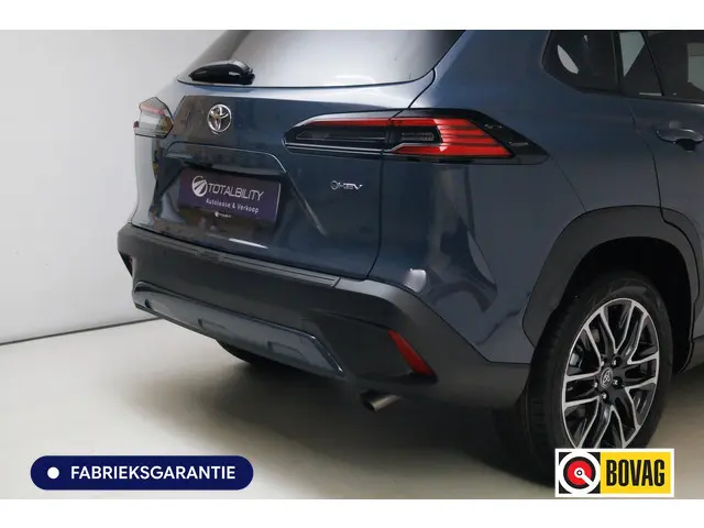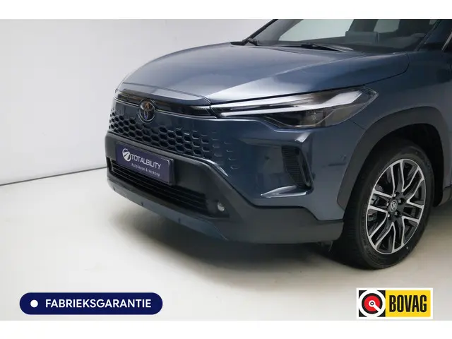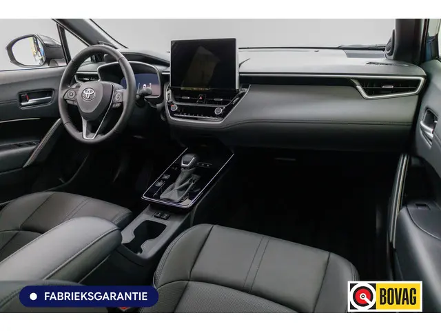Deze Toyota Corolla Cross maakt een voortreffelijke indruk. Hiermee mag je gezien worden in de stad én op de weg! Deze auto uit 2025 heeft nauwelijks gereden, met een tellerstand van slechts 1530 kilometer. Goed voor het milieu, goed voor de portemonnee: hybride rijden biedt het beste van beide! Deze Toyota Corolla Cross komt in de luxe uitvoering, inclusief lederen interieur. Deze Toyota Corolla Cross heeft verwarmbare voorstoelen, voor zowel bestuurder als bijrijder. Een praktische extra is de elektrisch bedienbare achterklep die opent en sluit met een druk op de knop. Het panoramadak geeft extra sfeer aan het interieur en biedt een prachtige doorkijk naar buiten. Opvallend is de geavanceerde matrix LED-verlichting met daglichtkwaliteit. De koplampen dimmen automatisch het deel van de lichtstraal waar voor- of tegenliggers in rijden. De overige segmenten blijven aan en verlichten de weg maximaal. Tot de uitrusting van deze Toyota behoren ook 18 inch lichtmetalen velgen, donker getint glas achter, in delen neerklapbare achterbank en LED-achterlichten.Het digitale dashboard stelt u in staat uw cockpitinterface te personaliseren. De 360 graden camera op deze auto is een innovatieve functie die de obstakels rondom de auto in beeld brengt voor een optimaal zicht. Met adaptive cruise control houdt deze auto automatisch afstand tot uw voorligger. Bij deze auto is uw smartphone een geavanceerde afstandsbediening. Remote services brengen u overal in contact met uw auto. Het complete geluidsspectrum van de hi-fi krijgt een extra boost door het high performance audiosysteem. Ook is de Toyota uitgerust met: navigatiesysteem, electronic climate control, draadloos opladen, DAB ontvangst, regensensor en keyless entry.