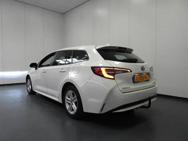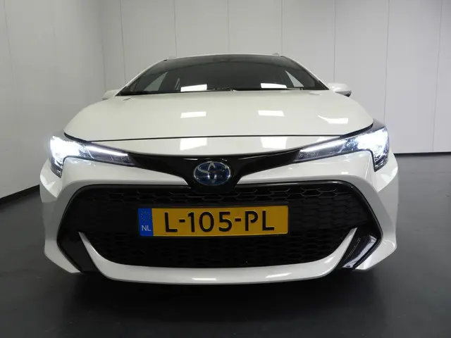 Met zijn inventieve techniek is de hybride Toyota Corolla Touring Sports tegelijk comfortabel en zuinig met brandstof. Dit is een van de betere hybride auto's. Ideaal rijden door de combi van elektromotor en verbrandingsmotor! De uitmonstering van deze auto wordt gecompleteerd door onder meer 16 inch lichtmetalen velgen, LED koplampen, in hoogte verstelbare passagiersstoel, getint glas, in delen neerklapbare achterbank en LED-achterlichten.Een handige optie is de achteruitrijcamera. Achteruitrijden, inparkeren en manoeuvreren gaat gemakkelijker dan ooit. Als u de adaptive cruise control inschakelt, regelt de auto zelf de snelheid en de afstand tot de auto voor u. Slimme spraakbesturing herkent gesproken opdrachten en voert ze uit. Als u 'm vraagt 'hoe gaat het?' geeft deze auto zelf het antwoord. Via de app op uw smartphone. U checkt de meters waar u maar wilt, of activeert diverse functies alvast. De achteropkomend verkeer waarschuwing is een mooie veiligheidsoptie, die middels sensoren in de gaten houdt wat er onderweg achter u gebeurt. Met climate control, audiobediening op het stuur, DAB ontvangst, buitentemperatuurmeter, isofix-aansluiting en centrale deurvergrendeling met afstandsbediening is deze auto helemaal compleet.