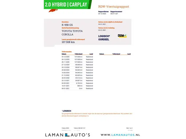 • Logische tellerstand met NAP (RDW gecontroleerd)