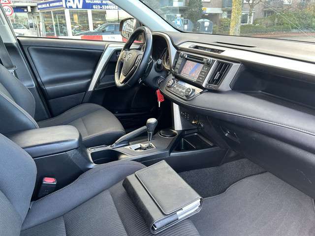De Toyota RAV4 is ontworpen als een alleskunner waarmee u zowel in de stad als in de buitengebieden uit de voeten kunt. Een krachtige viercilinder benzinemotor en een prettige handgeschakelde zesversnellingsbak zorgen voor de aandrijving van deze stoere Toyota. Tot de voorzieningen van deze auto behoren 17 inch lichtmetalen velgen, LED-dagrijverlichting, in hoogte verstelbare voorstoelen en donker getint glas achter.Niets achter deze auto blijft verborgen door de achteruitrijcamera. Een veilig gevoel! De auto is voorzien van een trekhaak en is een uitstekende caravantrekker. Nooit meer de weg kwijt: daarvoor zorgt het onboard navigatiesysteem met groot kleurenscherm. De auto is ook uitgevoerd met automatische airconditioning. Op het stuur bevinden zich ook de schakelaars waarmee u de audio bedient. De uitrusting van deze auto is met regensensor, cruise control, automatisch dimmende binnenspiegel, isofix-aansluiting, centrale deurvergrendeling met afstandsbediening en bagage afdekhoes behoorlijk compleet.
