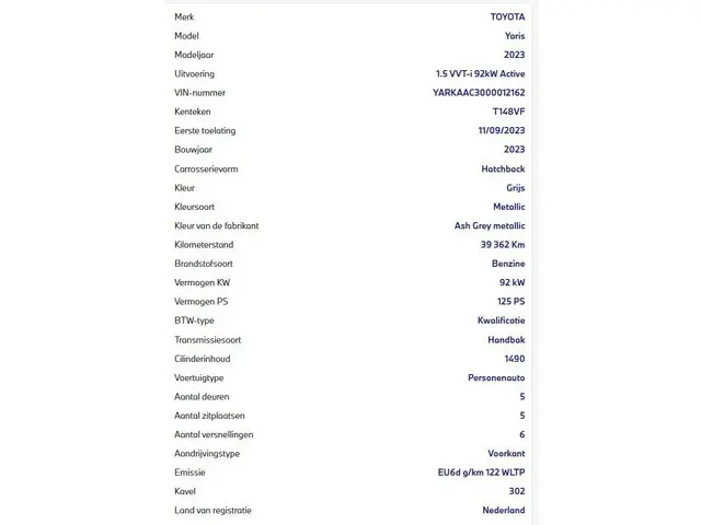 Voertuiggegevens van deze Toyota Yaris