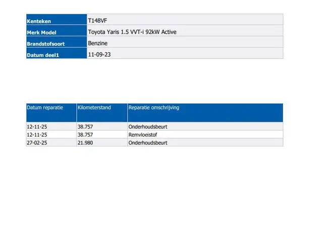 - Onderhoudsboekjes aanwezig