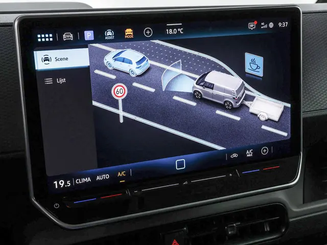 In deze auto zijn verschillende technologieën aanwezig die voor u het verkeer en de omgeving in de gaten houden en die desnoods ook kunnen remmen of bijsturen. Een belangrijke bijdrage aan de veiligheid onderweg levert de verkeersbord-detectie in deze Volkswagen Bedrijfswagens. Deze Volkswagen Bedrijfswagens ID. Buzz Cargo is ook behulpzaam als het gaat om een rechte koers. Het Lane-keeping systeem signaleert en corrigeert als u onbedoeld de rijstrooklijnen dreigt te overschrijden. Op lange ritten voorkomt de vermoeidheidsassistent dat uw concentratie afneemt. Ook helpen het autonoom remsysteem en bandenspanningcontrolesysteem, uw rit tot een veilige rit te maken.