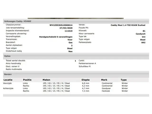 Voertuiggegevens van deze Volkswagen Caddy
