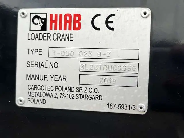 Kraan: Hiab 023, bouwjaar 2019, achter de cabine