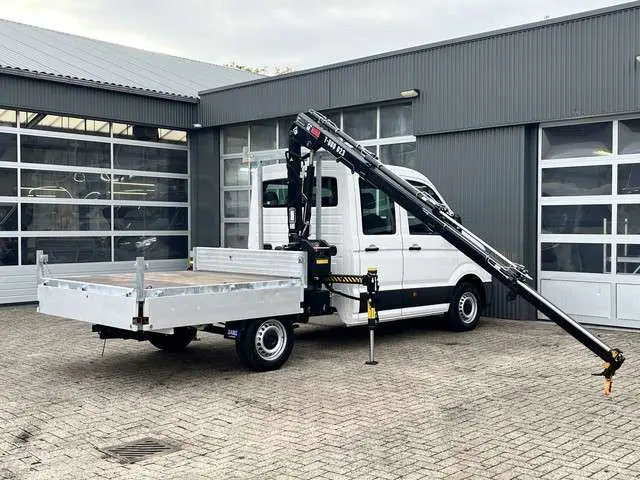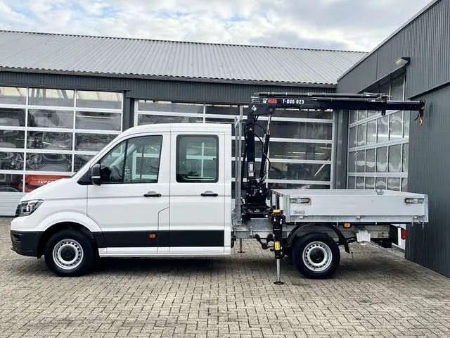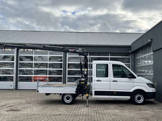 Een zeer nette Volkswagen Crafter35 2.0 TDI 102pk Dubbele cabine Hiab Laadkraan 023-3 Trekhaak 2500 kg trekgewicht Airco Cruise controle 6-Persoons Open laadbak Pick-up Euro 6 Bakwagen P-up Telefoonverbinding 1e eigenaarBinnenmaten laadbak zijn :