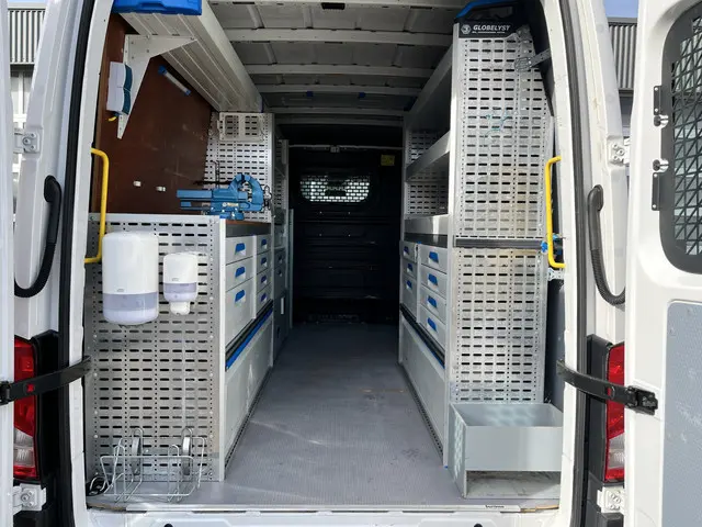 Volkswagen Crafter 35 2.0 TDI L3H3 Werkplaats inrichting Kast Inrichting Servicewagen Omvormer Standkachel Airco Cruise controle Werkplaats Lang hoog Sortimo inrichting 1e eigenaar Dealer onderhouden Euro 6 Bpm vrij voor parti