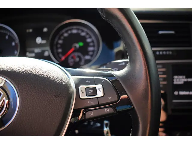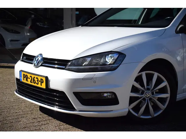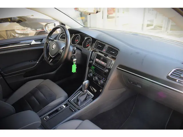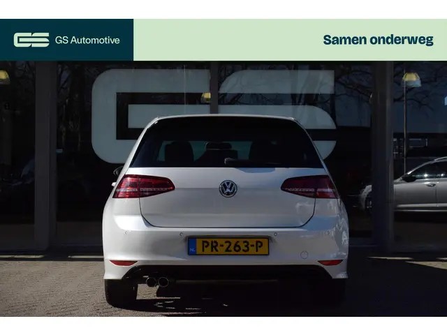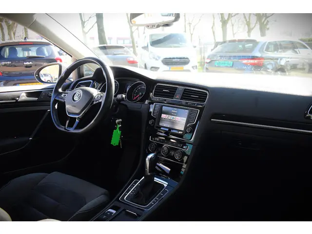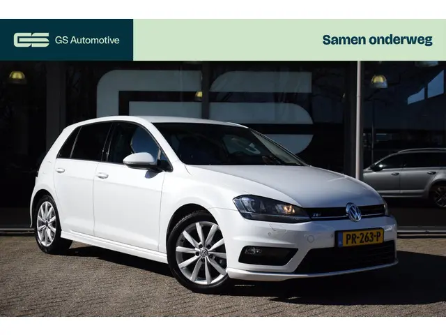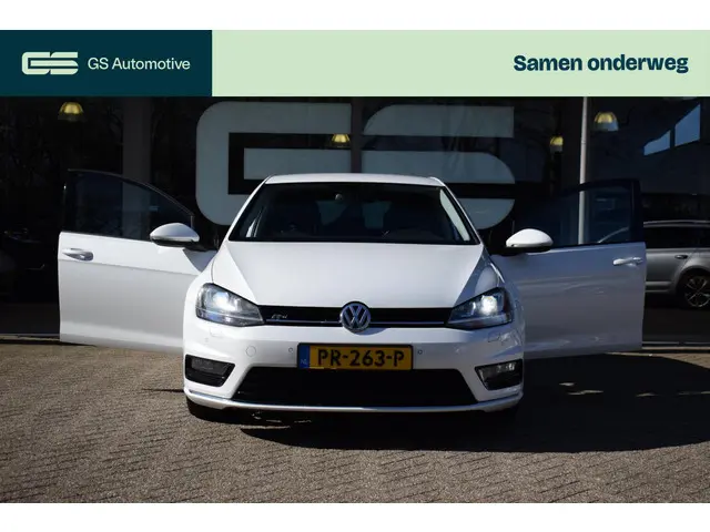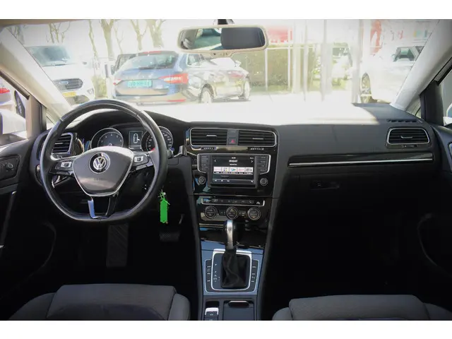 Deze Volkswagen Golf maakt een voortreffelijke indruk. Hiermee mag je gezien worden in de stad én op de weg! Met de sportieve R-Line styling is deze Volkswagen Golf een lust voor het oog. Niet voor niets is de vraag naar gebruikte Volkswagens zo groot, want de kwaliteit staat ook na een aantal jaren nog buiten kijf, zoals aan deze Golf duidelijk te zien is. Met zijn benzinemotor en automatische transmissie is dit een prima auto voor nog vele kilometers. Behaaglijk onderweg zijn? Als bestuurder geniet u van de verwarmbare voorstoelen met massagefunctie. Net als uw bijrijder! Natuurlijk zijn de sportstoelen super functioneel als het rechterpedaal ingetrapt wordt. Maar ook voor het uiterlijk doen ze veel! Bij de uitrusting van deze auto horen onder meer 17 inch lichtmetalen velgen, sportonderstel, halflederen bekleding, adaptieve mistlampen, dakspoiler en in delen neerklapbare achterbank.Soepel inparkeren gaat gemakkelijker dan u verwacht dankzij de achteruitrijcamera. De electronic climate control zorgt voor een prettige binnentemperatuur. Achter het stuur van deze Volkswagen bent u niet alleen. De auto kijkt als het ware met u mee tijdens de rit. De regensensor schakelt de ruitenwissers in als het nodig is en de automatisch inschakelbare verlichting doet de lichten voor u aan. Ook op de korte stukken is de cruise control een uitkomst. Kijk maar bij de benzinepomp! En deze auto heeft ook navigatiesysteem, multifunctioneel lederen stuur, DAB ontvangst, automatisch dimmende binnenspiegel, centrale deurvergrendeling met afstandsbediening en boordcomputer als standaard uitrusting.