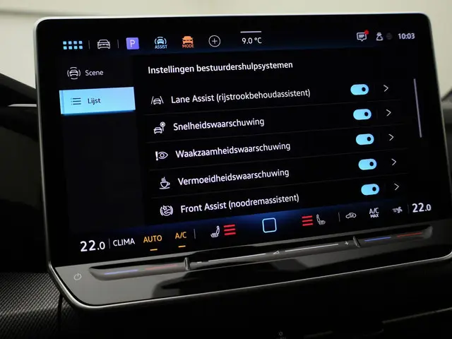 Geavanceerde systemen kunnen tijdens de rit bepaalde taken van u overnemen. Zo kijken er als het ware steeds extra ogen met u mee, zodat u tijdig kunt reageren op noodsituaties. De head-up display zorgt dat u de weg én de route-info constant in beeld heeft. Wat deze auto ook kan, is lezen. Hij 'leest' voor u de verkeersborden tijdens de rit en attendeert u erop door ze op het dashboard te projecteren. Voorzien van het Lane-keeping systeem. Ofwel: blijf automatisch in je baan. Bovenop deze veiligheidsfeatures heeft deze Volkswagen bovendien front assist, forward collision warning system, hill hold functie, vermoeidheidsherkenning, autonoom remsysteem en bandenspanningcontrolesysteem.