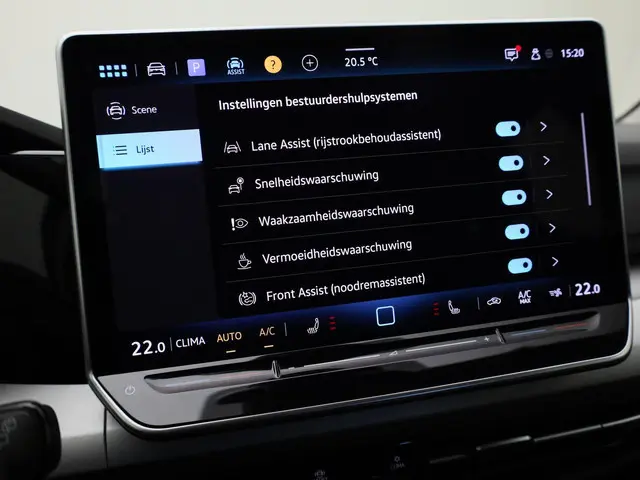 Rij- en route-info wordt perfect in beeld gebracht door het digitale dashboard. De 360 graden camera biedt een beter zicht bij slechte weersomstandigheden, waardoor u beter kan anticiperen op mogelijke gevaren. Adaptive cruise control is veilig en comfortabel. De snelheidsregelaar houdt automatisch afstand tot het voertuig dat voor u rijdt. Handig en veilig: Connected Services. Alle vitale functies en data van de auto checkt u via de app op uw smartphone. Onderweg kunt u veilig genieten van het audio-installatiesysteem met dab-radio. Want in deze Volkswagen bedient u het vanaf het stuurwiel. Deze auto is voorzien van kruisend verkeer detectie, automatische airconditioning en draadloos opladen.