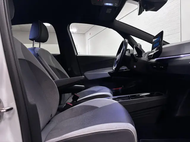 Hij is efficiënt in het verbruik en bovendien comfortabel en ruim. Standaard is hij voorzien van een uitstekende wegligging en achter het stuur voelt u zich meteen thuis. Dat kan alleen maar een Volkswagen zijn. Deze ID.3 beschikt daardoor over alle kwaliteiten die u in uw nieuwe auto zoekt. De techniek van deze auto is radicaal anders dan u gewend bent. U rijdt zacht zoemend naar uw bestemming, de actieradius van de accu's is ruimschoots voldoende voor de meeste dagelijkse ritten. Een belangrijke eigenschap van iedere Volkswagen is zijn duurzaamheid. Dat ziet u ook aan deze ID.3. Lekker hoor, die verwarmbare voorstoelen. Helemaal op koude dagen. Als u de stuurverwarming inschakelt, geniet u van weldadige warmte voor uw handen en vingers. Voorzien van matrix LED-verlichting. De auto dimt precies dat deel van de lichtstraal waar de voor- of tegenliggers in rijden. De overige segmenten blijven aan en verlichten de weg. Bij de uitrusting van deze auto horen onder meer 19 inch lichtmetalen velgen, extra getint glas, in delen neerklapbare achterbank, LED-achterlichten en snelheidsafhankelijke stuurbekrachtiging.Bij het inparkeren laat de achteruitrijcamera precies zien hoeveel meter... decimeter... centimeter ruimte er nog is! Adaptive cruise control houdt de ingestelde snelheid vast en houdt automatisch afstand tot uw voorligger. Naast handmatige bediening kunt u belangrijke functies met uw stem bedienen dankzij de ingebouwde spraakbediening. Communiceren met uw auto? Dat gaat via remote services. Met uw smartphone maakt u waar dan ook contact om allerlei functies te checken of te activeren. De snelste of zuinigste weg? Het full map navigatiesysteem aan boord wijst de juiste weg! Ook achteropkomend verkeer waarschuwing, automatische airconditioning, DAB ontvangst, regensensor, keyless entry en automatisch dimmende binnenspiegel horen tot de voorzieningen op deze auto.