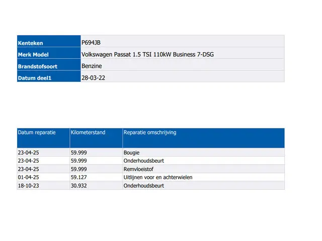 Voertuiggegevens van deze Volkswagen Passat