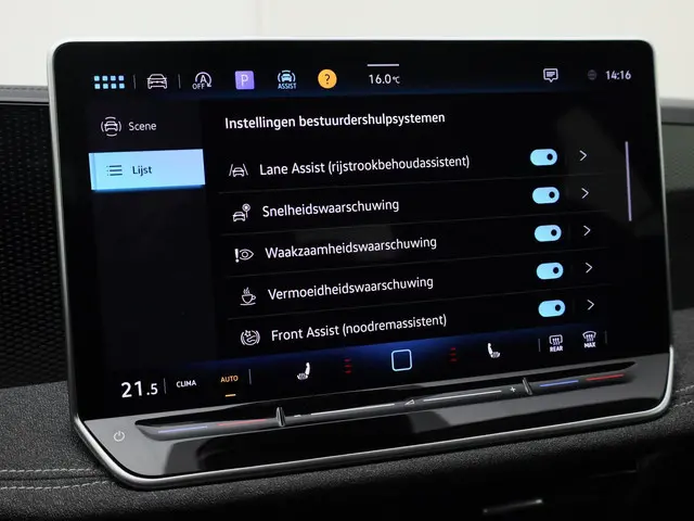In deze auto zijn verschillende technologieën aanwezig die voor u het verkeer en de omgeving in de gaten houden en die desnoods ook kunnen remmen of bijsturen. U rijdt ook veiliger omdat deze auto voor u de verkeersborden langs de weg kan lezen. De belangrijkste borden worden op uw instrumentarium geprojecteerd, zodat u ze niet kunt missen. Het Lane-keeping systeem doet precies wat nodig is: waarschuwen en corrigeren bij onbedoelde overschrijding van de rijstrooklijnen. Forward collision warning waarschuwt bij een dreigende aanrijding en vermindert de gevolgen van een ongeval. In deze Volkswagen vinden we verder een dodehoekdetectie, front assist, hill hold functie, vermoeidheidsherkenning, autonoom remsysteem en bandenspanningcontrolesysteem.