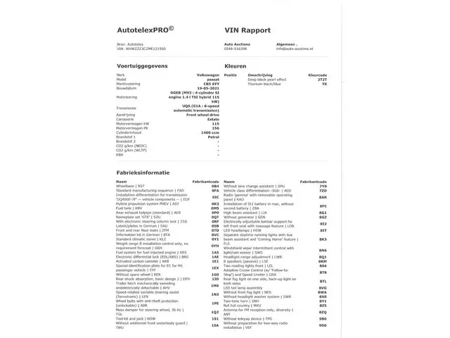Voertuiggegevens van deze Volkswagen Passat