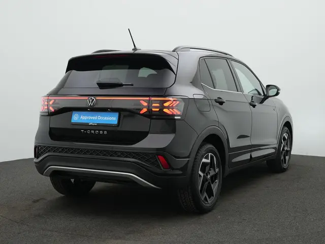 Volkswagen T-Cross R-Line – Sportieve uitstraling met slimme technologieDeze Volkswagen T-Cross combineert een stoer en dynamisch design met het comfort en de technologie die je van een moderne SUV mag verwachten. De R-Line uitvoering geeft hem een extra sportieve uitstraling, versterkt door de Deep Black pareleffect lak en de 17 inch ‘Coventry’ lichtmetalen velgen. Details zoals de Matrix LED koplampen (IQ.LIGHT) en de LED-achterlichten met dynamisch knipperlicht zorgen niet alleen voor een krachtige look, maar ook voor uitstekend zicht en veiligheid. De afneembare trekhaak maakt deze T-Cross bovendien verrassend veelzijdig in het dagelijks gebruik.
