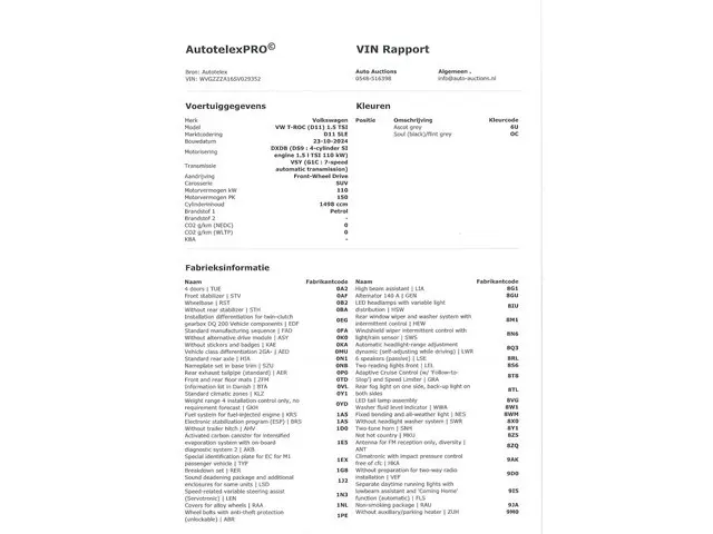 Voertuiggegevens van deze Volkswagen T-Roc