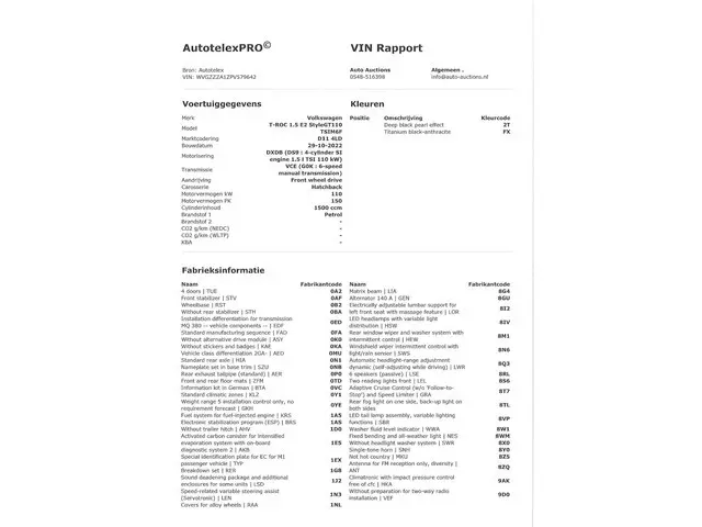 Voertuiggegevens van deze Volkswagen T-Roc