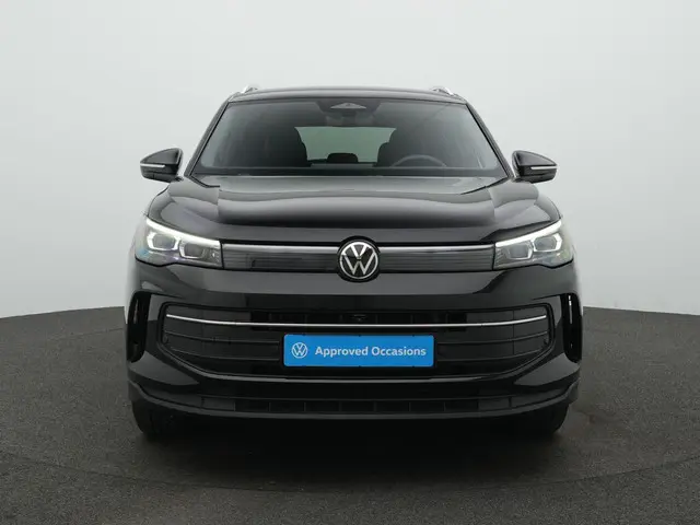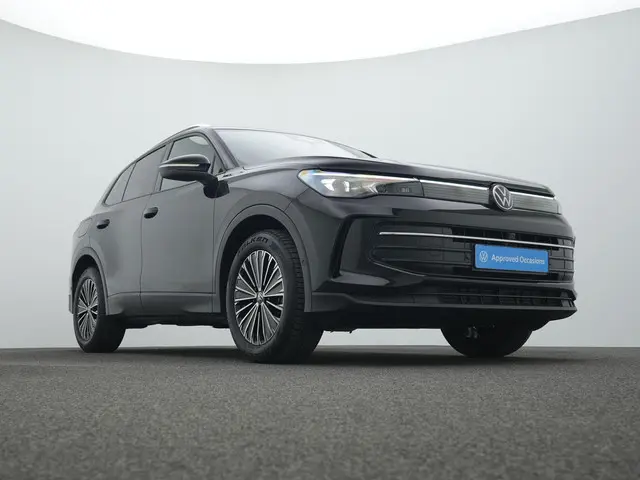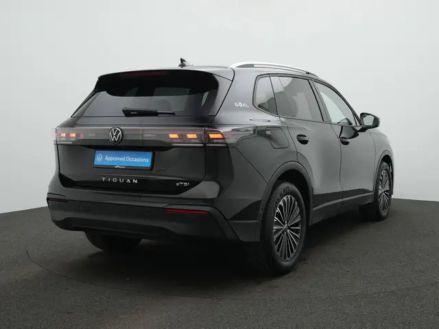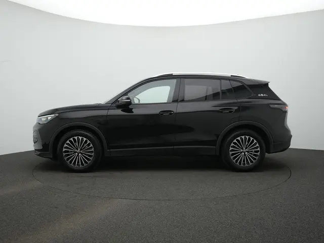 Volkswagen Tiguan Goal Edition – Sterk in elke linieDeze Volkswagen Tiguan Goal staat strak opgesteld aan de middenlijn. In Grenadilla Black metallic en op 18 inch lichtmetalen velgen ‘Napoli’ zwart gepolijst oogt hij zelfverzekerd en scherp, alsof hij net uit de spelerstunnel komt. De HD Matrix LED-koplampen (IQ.LIGHT), 3D LED-achterlichten met dynamisch knipperlicht en de verlichte LED-strip voor en achter zorgen voor een herkenbare en moderne lichtsignatuur.