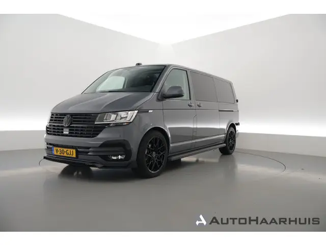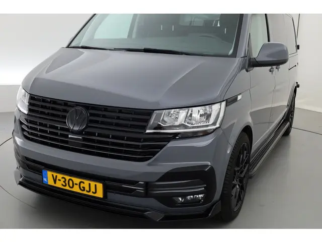 De Volkswagen Transporter in de mooie kleur: Pure Grey hebben we uitgerust als "BLACK EDITION".. dit pakket bestaat uit:* Dikke 20" Zwarte Lichtmetalen velgen met All Season banden