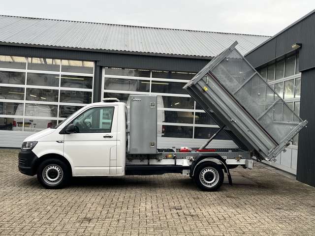 Volkswagen Transporter 2.0 TDI L2H1 150pk Pick-up Kipper open laadbak Airco Cruise controle Trekhaak 2500kg trekgewicht 1e eigenaar 3-Persoons Kieper Gereedschapskist P-up Doka Pritsche Ahk 2500kg Euro 6