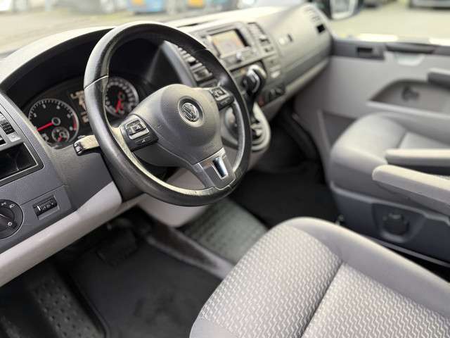 Volkswagen Transporter Kombi 2.0 TDI DSG Automaat L1H1 met o.a. Comfort-pakket (airco, buitenspiegels elektrisch verstel- en verwarmbaar, centrale vergrendeling met afstandsbediening, elektrische ramen voor, mistlampen voor adaptief), Slecht-weer-pakket (achterruitwisser, mistlampen voor), Radio- en navigatiesysteem "RNS 315" navigatie met touchscreen en kleurenbeeldscherm, Bandenspanningsindicator, Cruise control, Lederen stuurwiel, Media In aansluiting (iPod), Mistlampen met bochtverlichting, Multifunctioneel, Stuurwiel, Parkeerhulp vóór en achter, Privacy glass, etc.MArgeregeling.