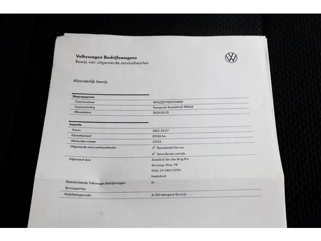 Voertuiggegevens van deze Volkswagen Transporter