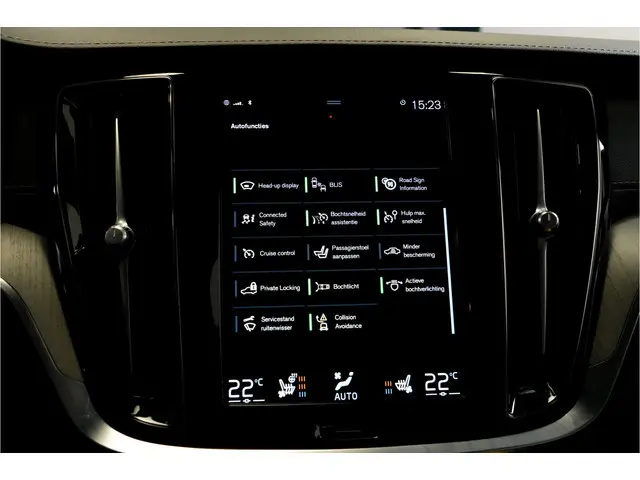 De nieuwste veiligheidssystemen komen in deze Volvo V60 Cross Country samen. Onderweg zorgt verkeersborddetectie ervoor dat u geen waarschuwingsbord mist. Het Lane-keeping systeem doet precies wat nodig is: waarschuwen en corrigeren bij onbedoelde overschrijding van de rijstrooklijnen. Actieve dodehoekdetectie herkent andere voertuigen die in uw dode hoek rijden. Met dit hulpsysteem bent u veiliger en comfortabeler onderweg. De veiligheid van deze auto wordt verder verhoogd door head-up display, City Safety System, forward collision warning system, hill hold functie, brake assist en vermoeidheidsherkenning.