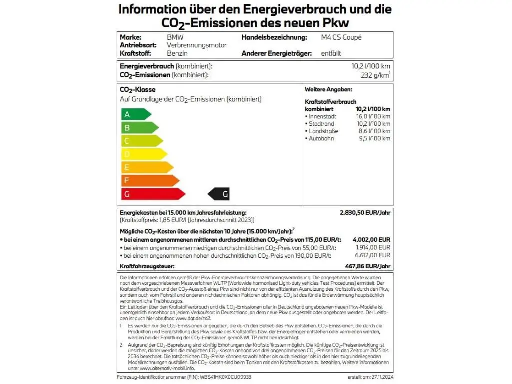 Voertuiggegevens van deze BMW M4