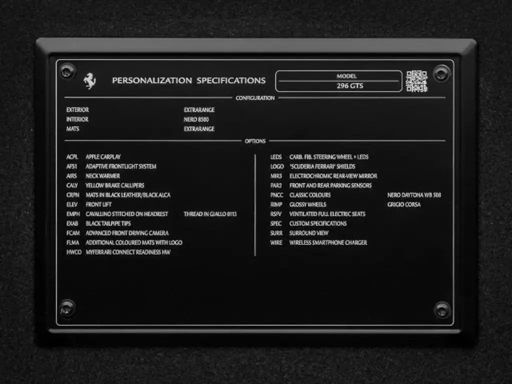 Voertuiggegevens van deze Ferrari 296