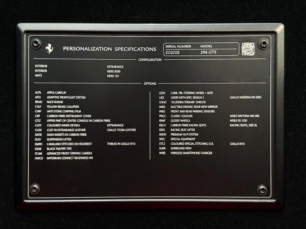 Voertuiggegevens van deze Ferrari 296 GTS