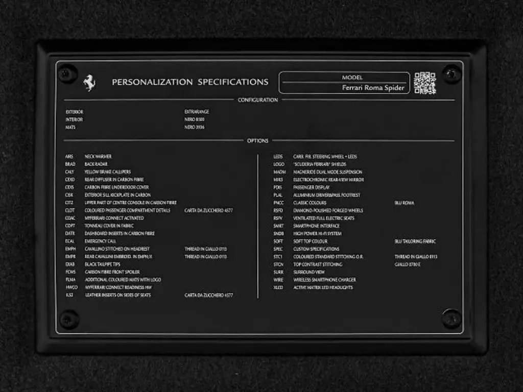 Voertuiggegevens van deze Ferrari Roma