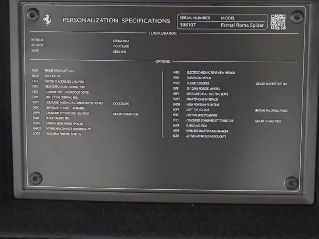 Voertuiggegevens van deze Ferrari Roma