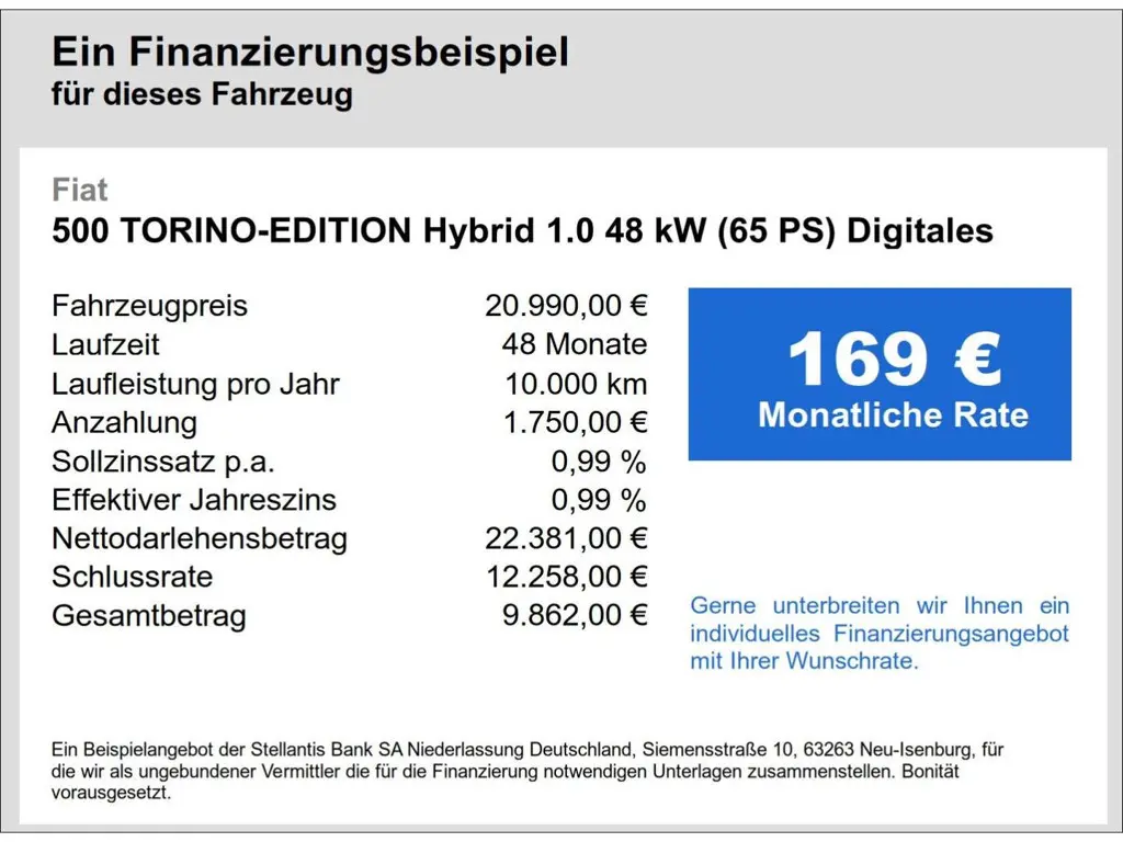 Fiat 500 TORINO-EDITION Hybrid 1.0 48 kW (65 PS) Digi