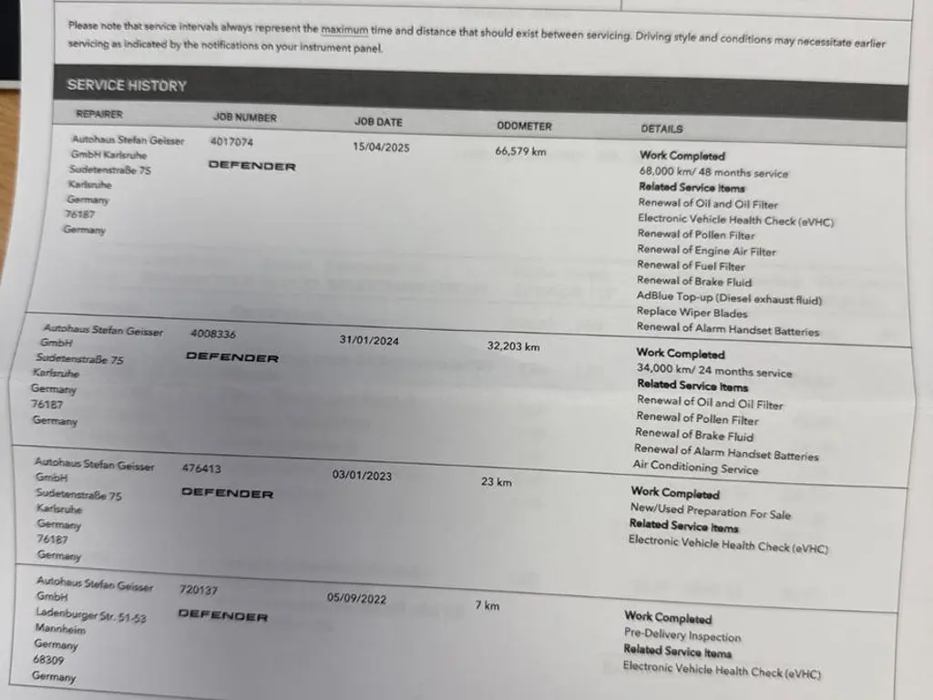 Voertuiggegevens van deze Land Rover Defender