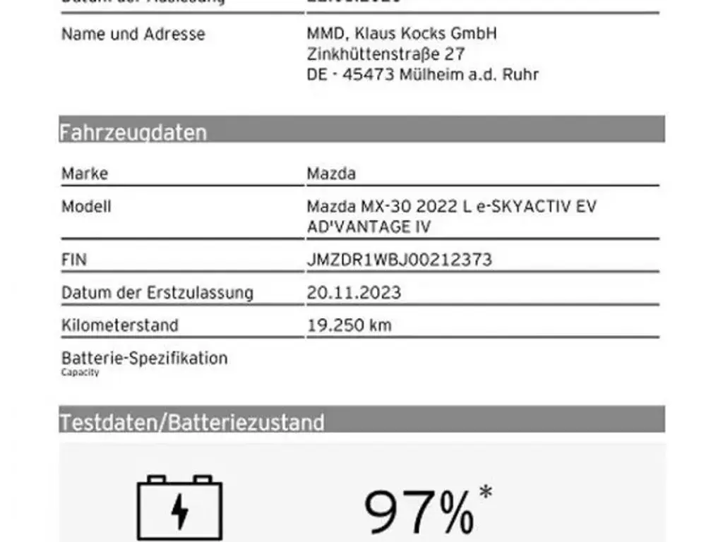Voertuiggegevens van deze Mazda MX-30