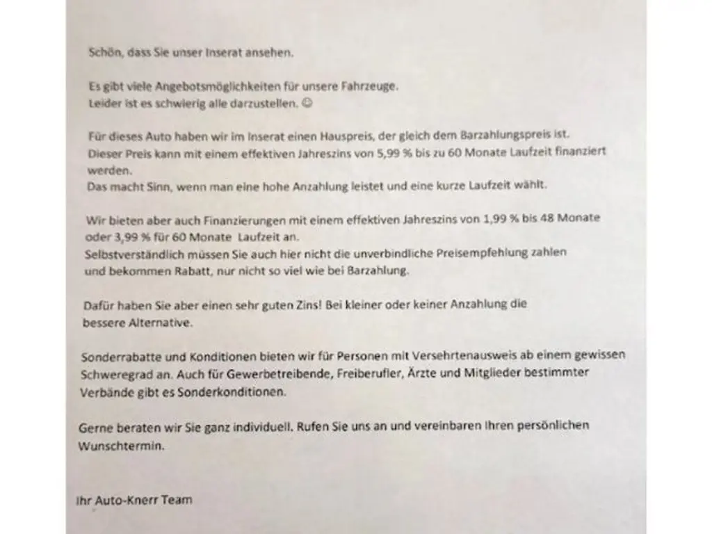 Snel en fijn contact. Afhandeling gaat ook supersnel. Een auto op het oog gehad en binnen een week was alles geregeld en stonden we op de weg met de nieuwe auto. Snel contact en goede uitleg bij vragen.
