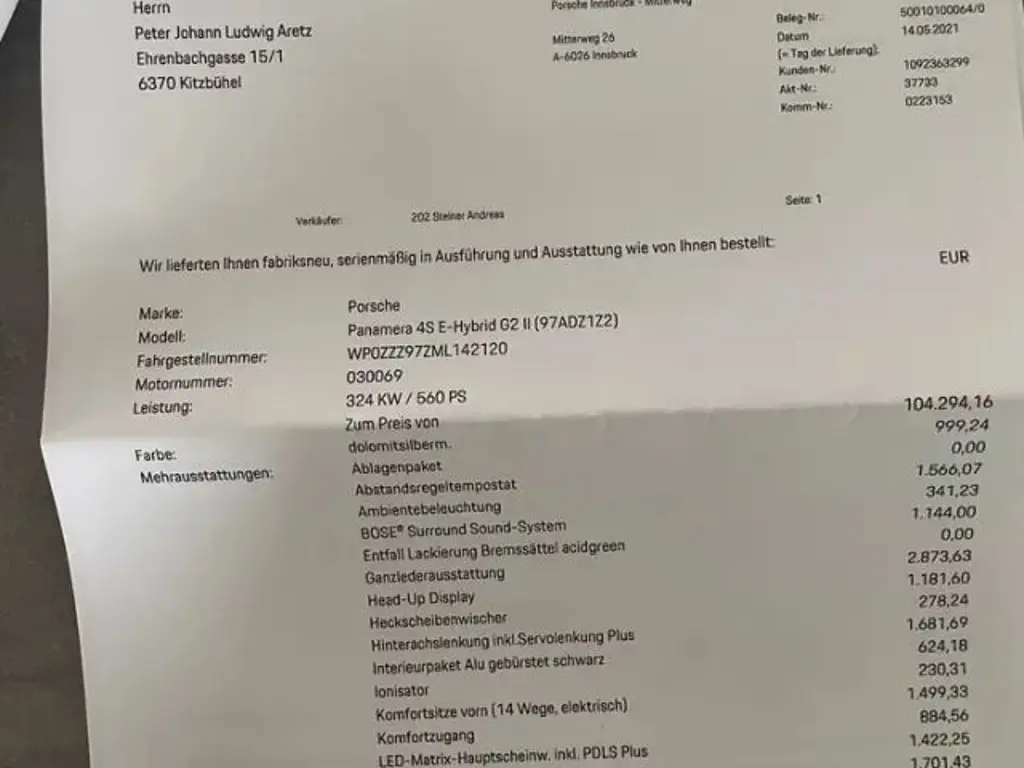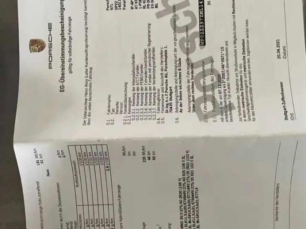 Voertuiggegevens van deze Porsche Panamera