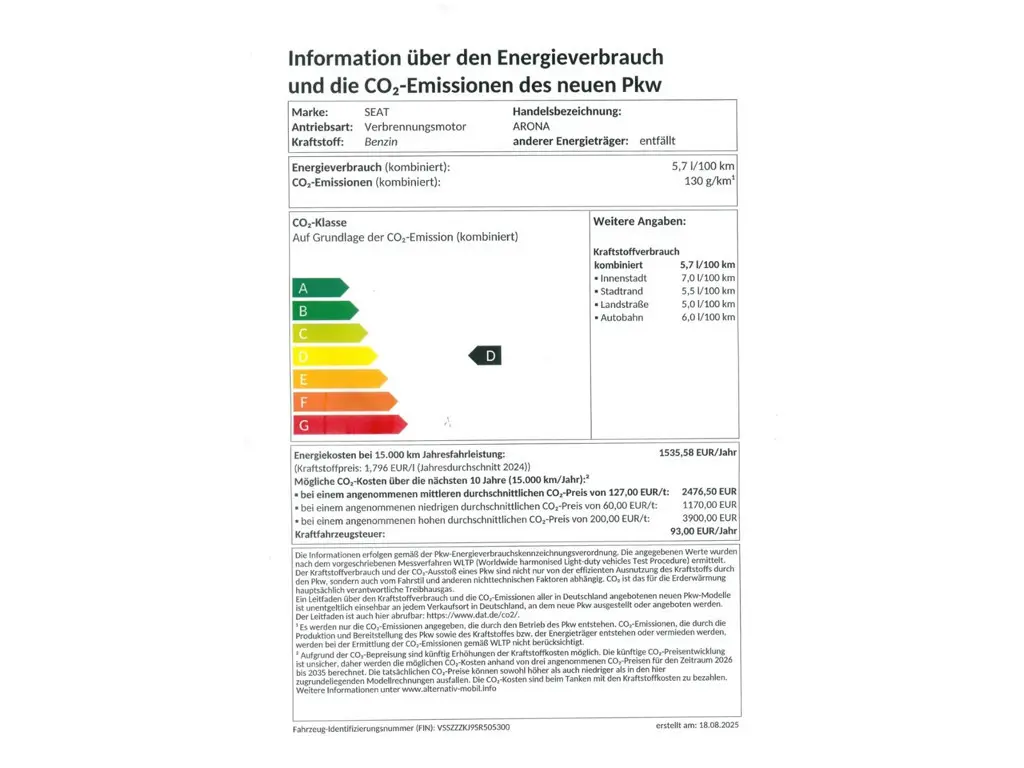 Voertuiggegevens van deze Seat Arona