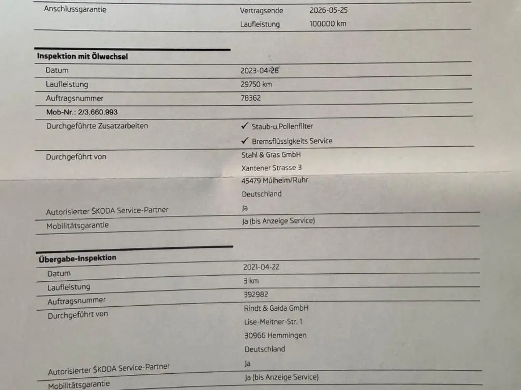 - Kilometerstand: