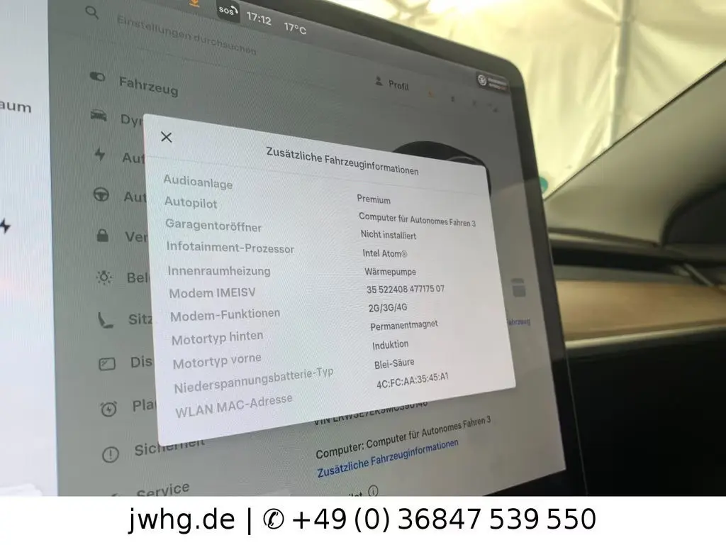 Voertuiggegevens van deze Tesla Model 3