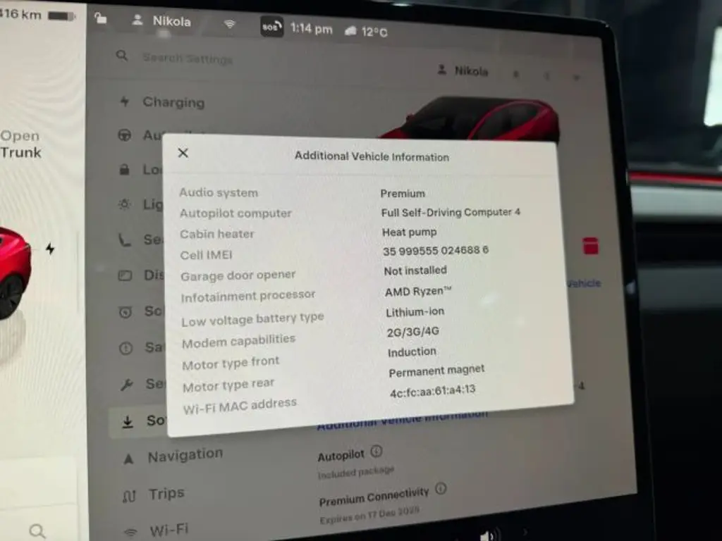 Voertuiggegevens van deze Tesla Model 3