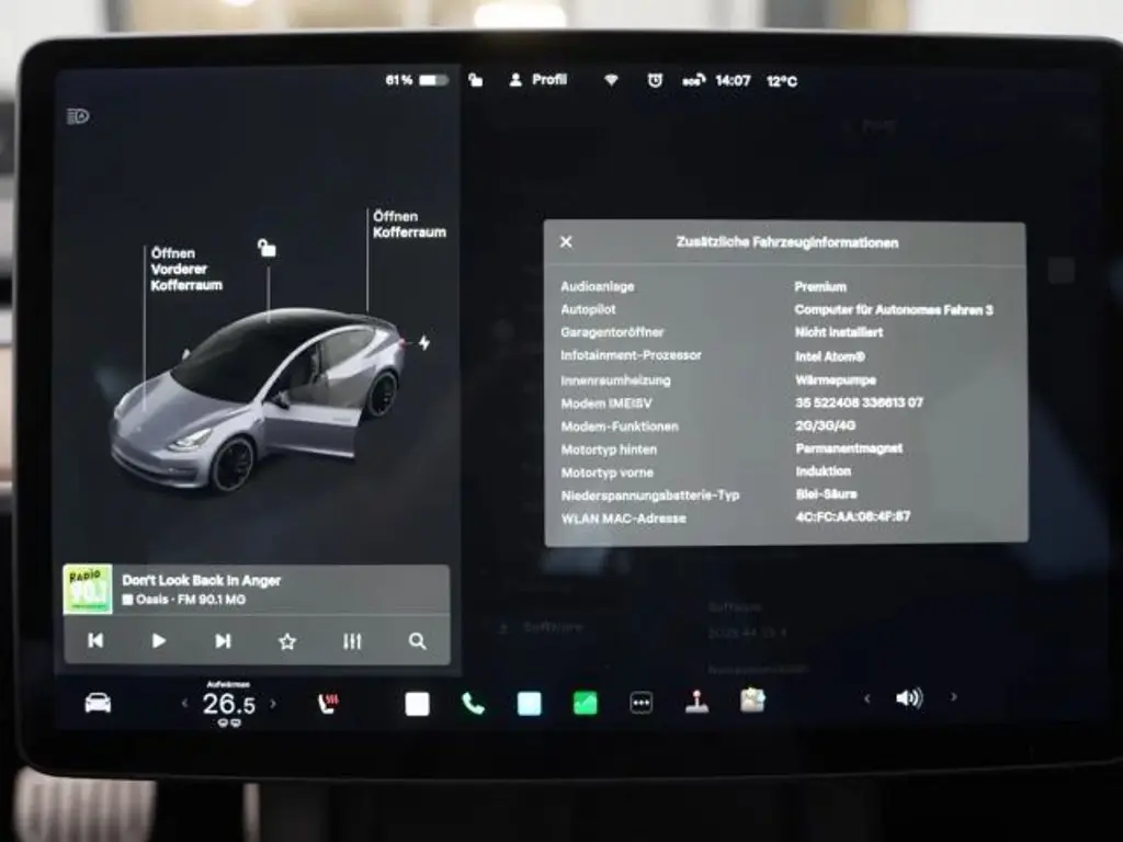 Voertuiggegevens van deze Tesla Model 3