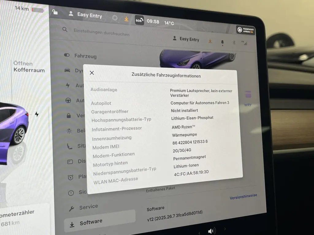 Voertuiggegevens van deze Tesla Model 3
