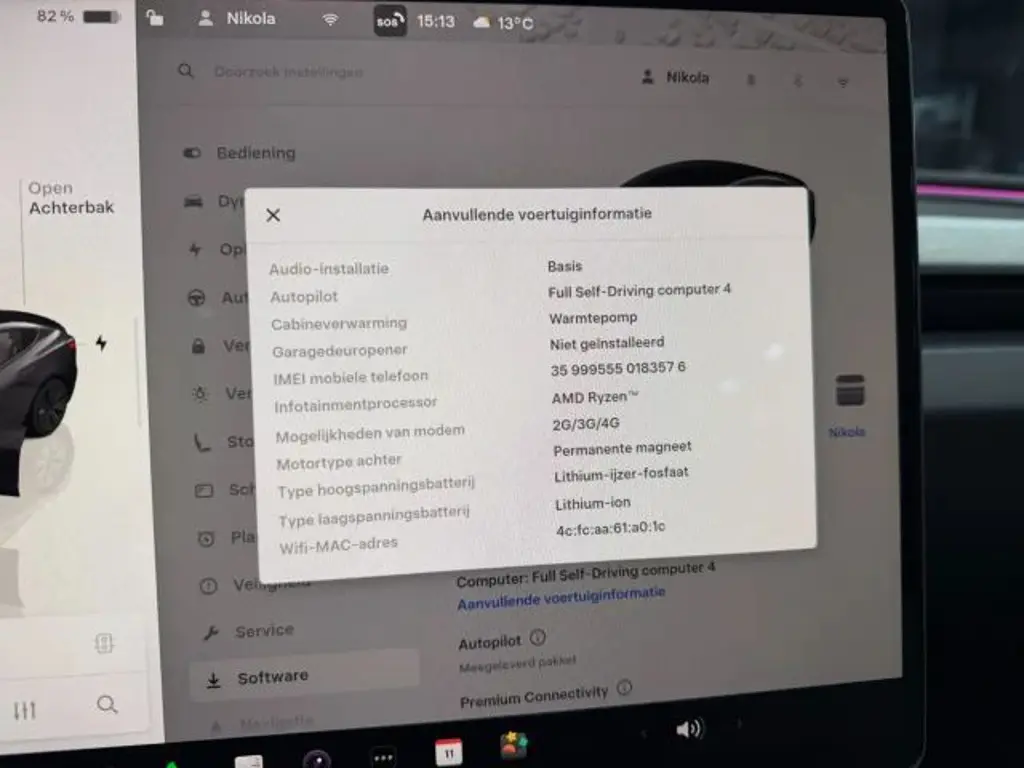 Voertuiggegevens van deze Tesla Model 3