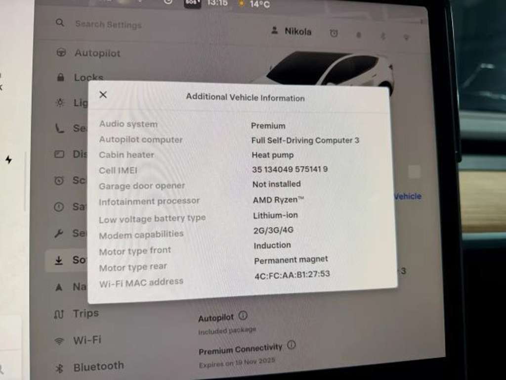 Voertuiggegevens van deze Tesla Model Y