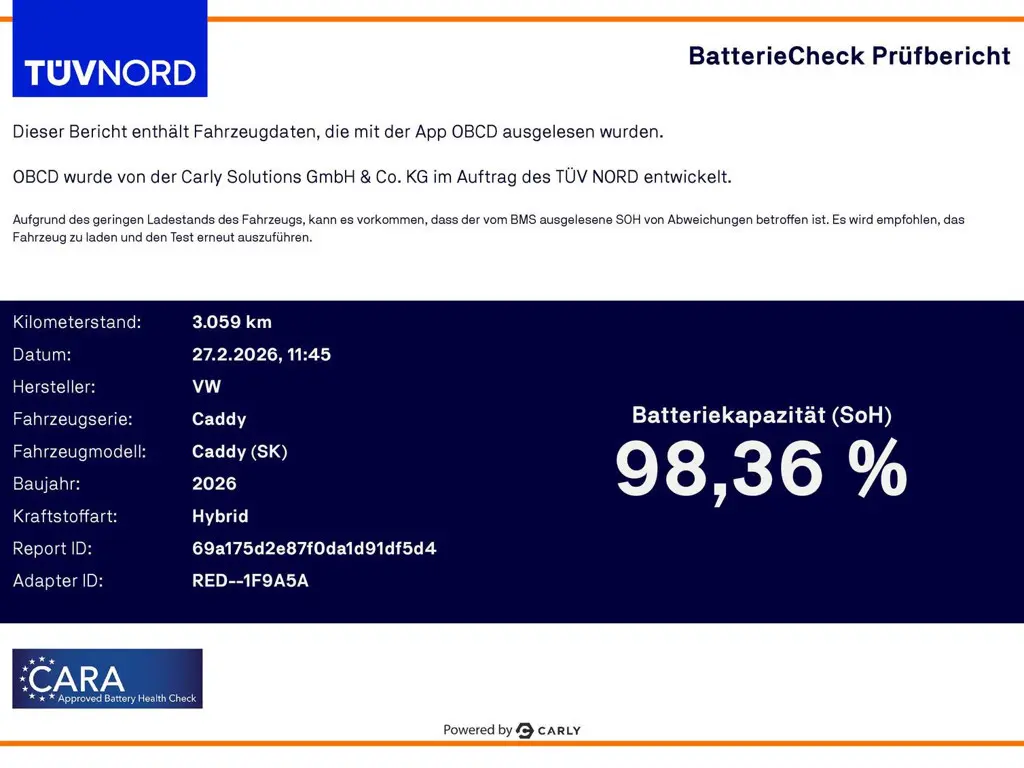 Voertuiggegevens van deze Volkswagen Caddy